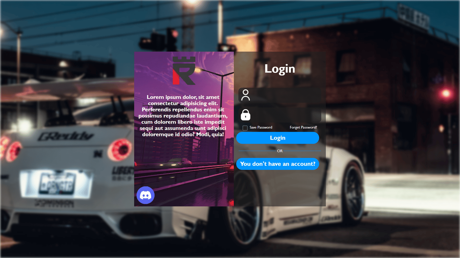 MTA:SA Roleplay Login Panel (Used in "account")